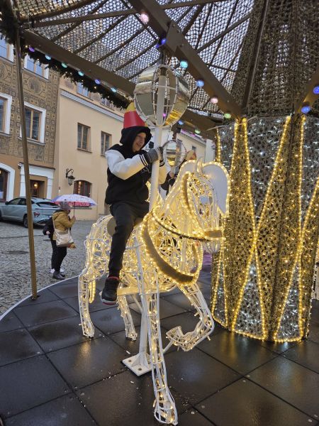 W dniu 07.12.2025 r. uczniowie Specjalnego Ośrodka Szkolno – Wychowawczego im. św. Jana Pawła II w Leżajsku pojechali na wycieczkę do Lublina. Głównym celem wycieczki było odebranie nagrody za zdobycie I – go miejsca w konkursie plastycznym zorganizowanym przez Fundację Szczęśliwe Dzieciństwo, pt.,,Święty Mikołaj pielgrzym nadziei” przez uczennicę III klasy – Klaudię Morelowską. Konkurs adresowany był do uczniów w różnych kategoriach wiekowych od przedszkola do szkół podstawowych. Przy okazji nasi uczniowie wzięli udział w Orszaku Świętego Mikołaja, który odbył się po raz dwunasty w historii Lublina i przeszedł ulicami miasta. Lubelski orszak miał być świętem radości, do którego zostali zaproszeni uczniowie z okolicznych szkół, parafianie oraz mieszkańcy Lublina. Wycieczka zakończyła się pokazem sztucznych ogni oraz gorącą czekoladą