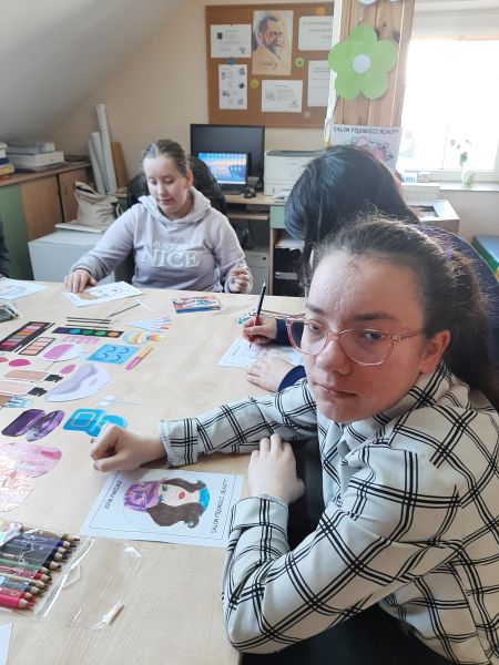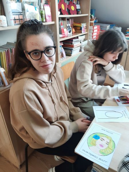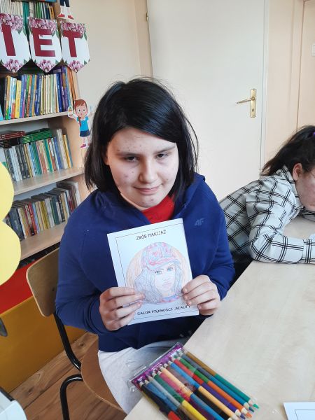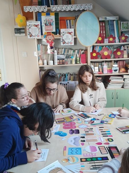 Na ten czas biblioteka zamieniła się w salon piękności „Beauty”. Na początku zajęć uczennice słuchały wierszy o dziewczynkach i kobietach, z którymi mogły się utożsamiać a następnie dowiadywały się z jakich zabiegów można skorzystać w salonie piękności i na czym polega praca kosmetyczki. Każda z dziewcząt mogła spróbować swoich umiejętności projektując wzornik paznokcia oraz makijaż dla dorosłych pań. Z pewnością niejeden salon piękności mógłby skorzystać z powstałych projektów, ponieważ dziewczynki wykazały się dużą kreatywnością. Wspólnie rozmawiałyśmy o tym, jak na co dzień dbać o ciało i jego higienę aby wszystkim wokół było z nami miło i przyjemnie. Na zakończenie zajęć uczestniczkom wręczono dyplomy „Wspaniałej Kobietki” oraz małe upominki, a pozostałe dziewczynki naszej szkoły otrzymały pamiątkowe zakładki do książek.