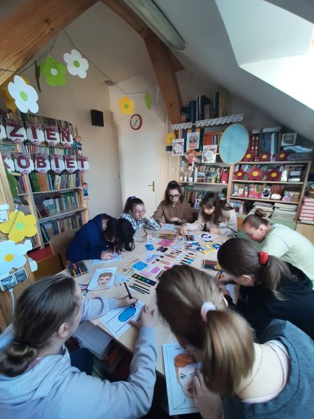 Dzień Kobiet w bibliotece szkolnej.