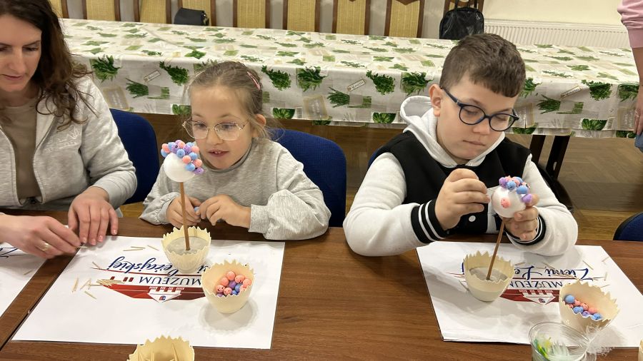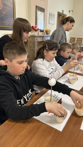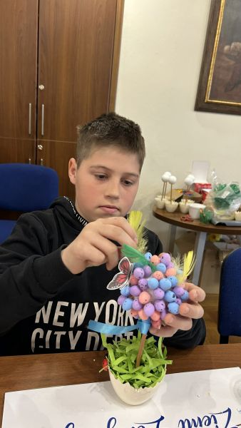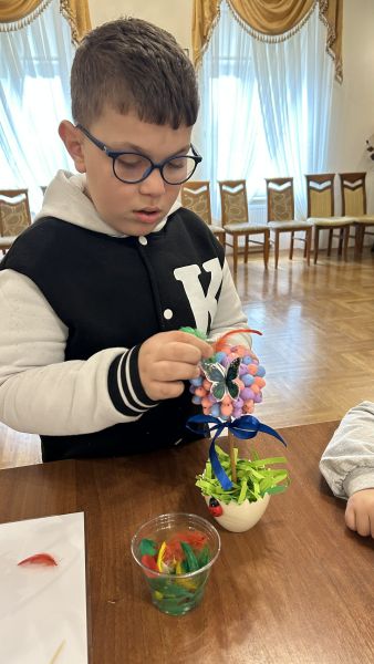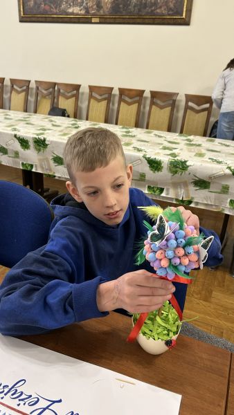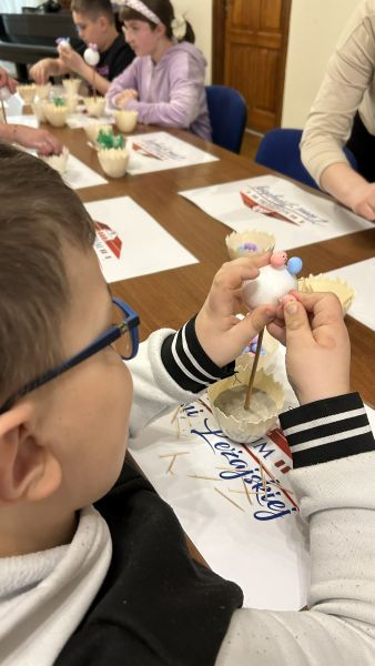 Podczas spotkania nasi podopieczni z zaangażowaniem tworzyli własnoręczne ozdoby świąteczne, rozwijając przy tym swoją kreatywność, zdolności manualne oraz wyobraźnię. Warsztaty były również doskonałą okazją do poznania pięknych tradycji wielkanocnych oraz integracji w radosnej, serdecznej atmosferze.